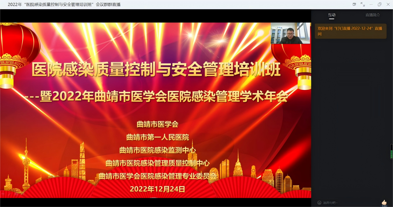 2022年12月24日,曲靖市医学会医院感染管理专业委员会2022年学术年会暨“医院感染质量控制与安全管理培训班”在曲靖市第一人民医院顺利举办。此次会议由曲靖市医学会主办,曲靖市医学会医院感染管理专业委员会、曲靖市第一人民医院医院感染管理部承办。