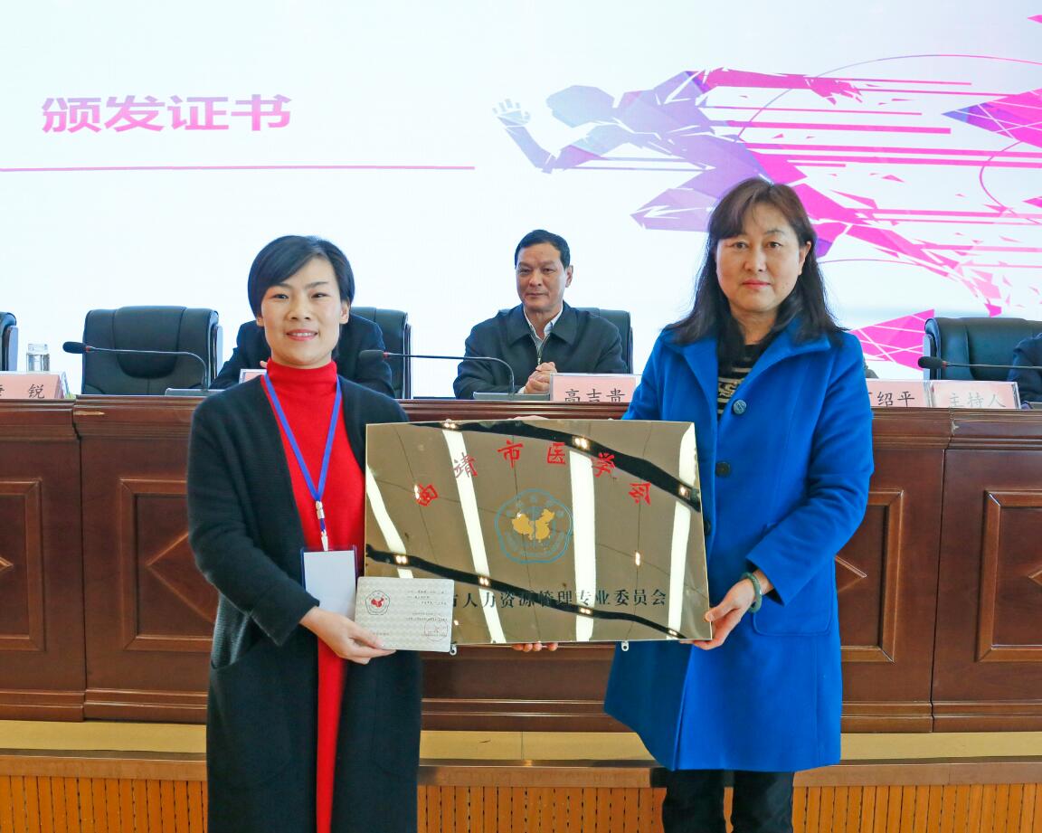 会上,与会领导、专家先后对专委会的成立表示热烈祝贺,对医院人力资源管理工作取得的成绩给予充分肯定并对学科发展寄予殷切期望。宣读了《曲靖市医学会人力资源管理专业委员会第一届委员会选举结果》,市一院人力资源部主任侯彩娥当选为专委会第一届委员会主任委员,专委会挂靠在市一院。唐锐院长为主任委员授牌、颁发证书,就坐主席台的领导为副主任委员颁发证书。