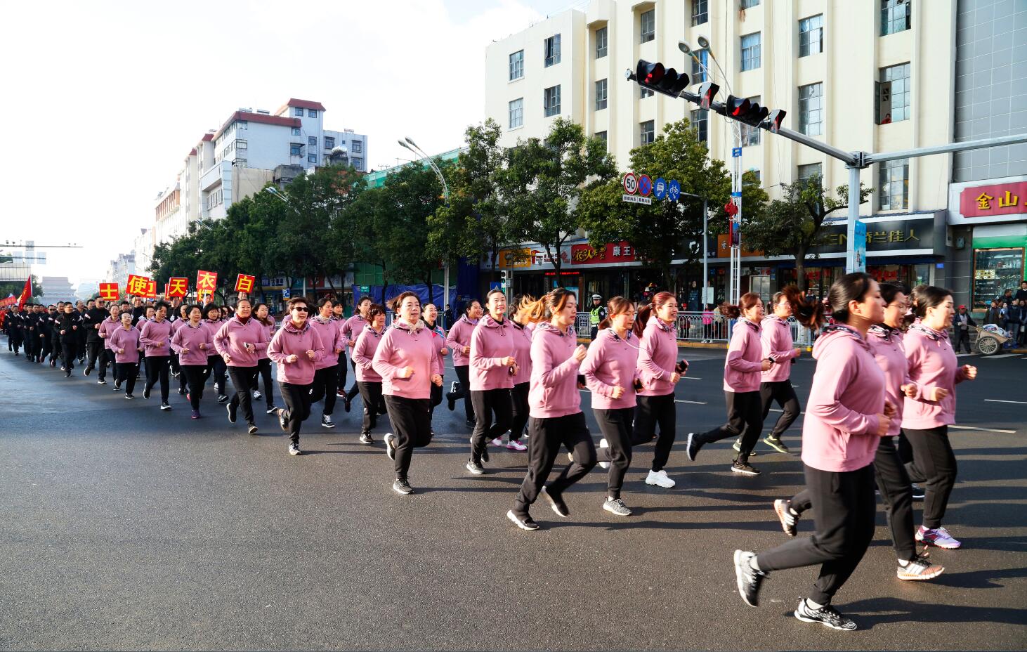 踏着新年的曙光,曲靖市“健康与文明同行”2019年“新华杯”元旦穿城长跑活动在南城门广场拉开序幕。上午9时许,曲靖市第一人医院干部职工组成的长跑方队和全市近万名机关干部、企业员工、部队官兵、基层群众激情开跑,以奔跑的姿态迎接崭新的一年。