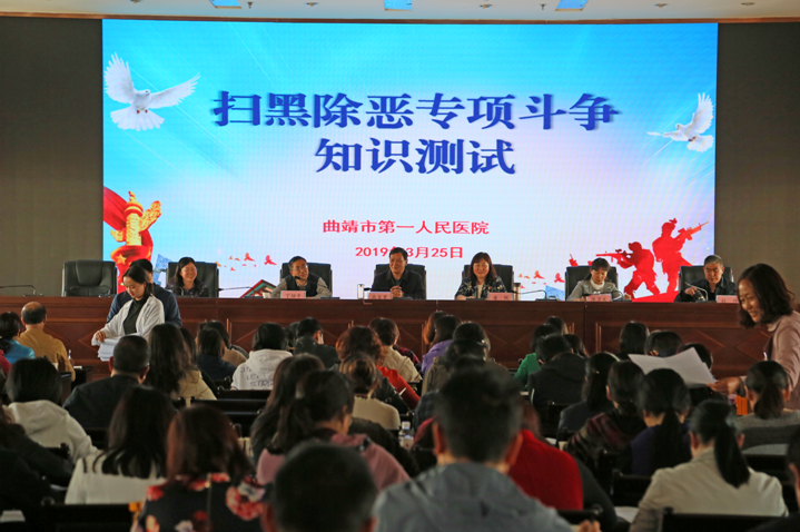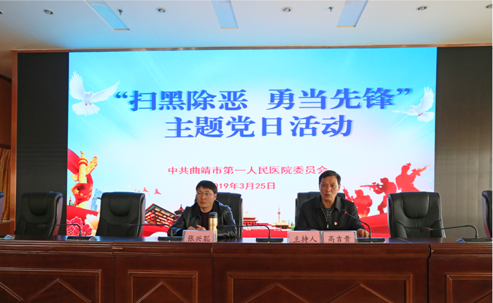 为深入贯彻落实习近平总书记重要指示精神和党中央、省、市委及各级卫健委扫黑除恶专项斗争决策部署要求,3月25日,医院邀请曲靖市委政法委常务副书记张兴聪同志为全院党员干部讲“扫黑除恶 勇当先锋”主题党课。