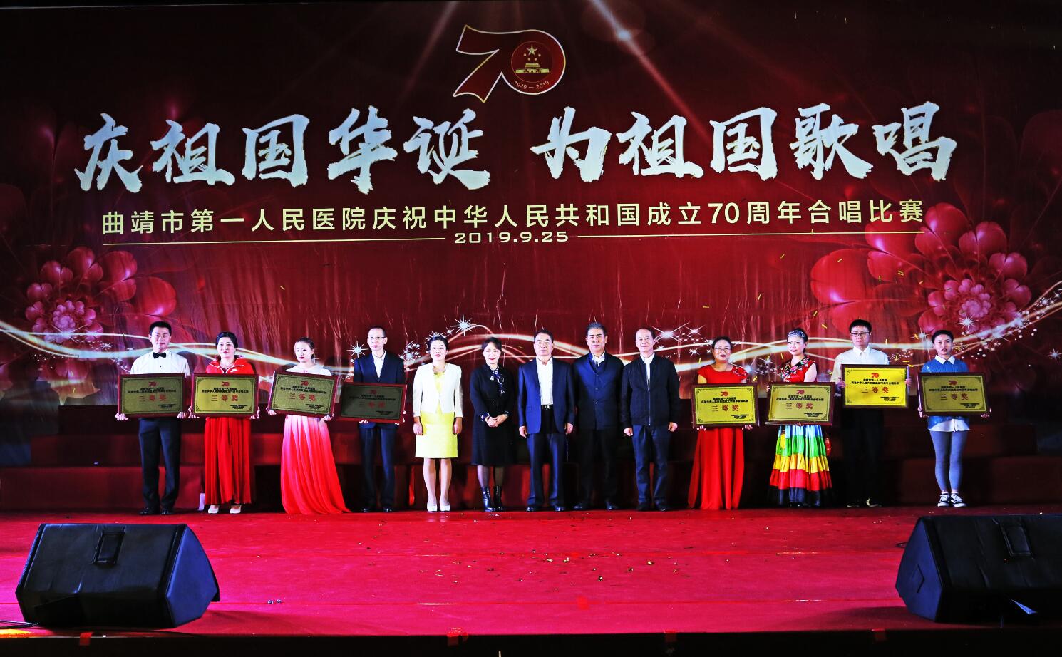 经过激烈角逐,政工部+行政事务部+人力资源部+综合信息部参赛队、医院感染管理部+医务部+护理部+综合运营管理部+消毒供应中心参赛队、眼科+耳鼻咽喉科参赛队3支队伍荣获一等奖,神经外科、泌尿外科一病区、北城合唱团(产科、妇科、儿内科、儿外科、北城综合内外科)、麻醉科、口腔科、财务部、医院离退休合唱队7支队伍荣获二等奖,皮肤科、肿瘤科、科教部、心血管内科、超声科、康复科、普外科二病区、惠滇医疗产业部、重症医学科、药械部参赛队10支队伍荣获三等奖。院领导为获奖科室代表颁发了奖牌。
