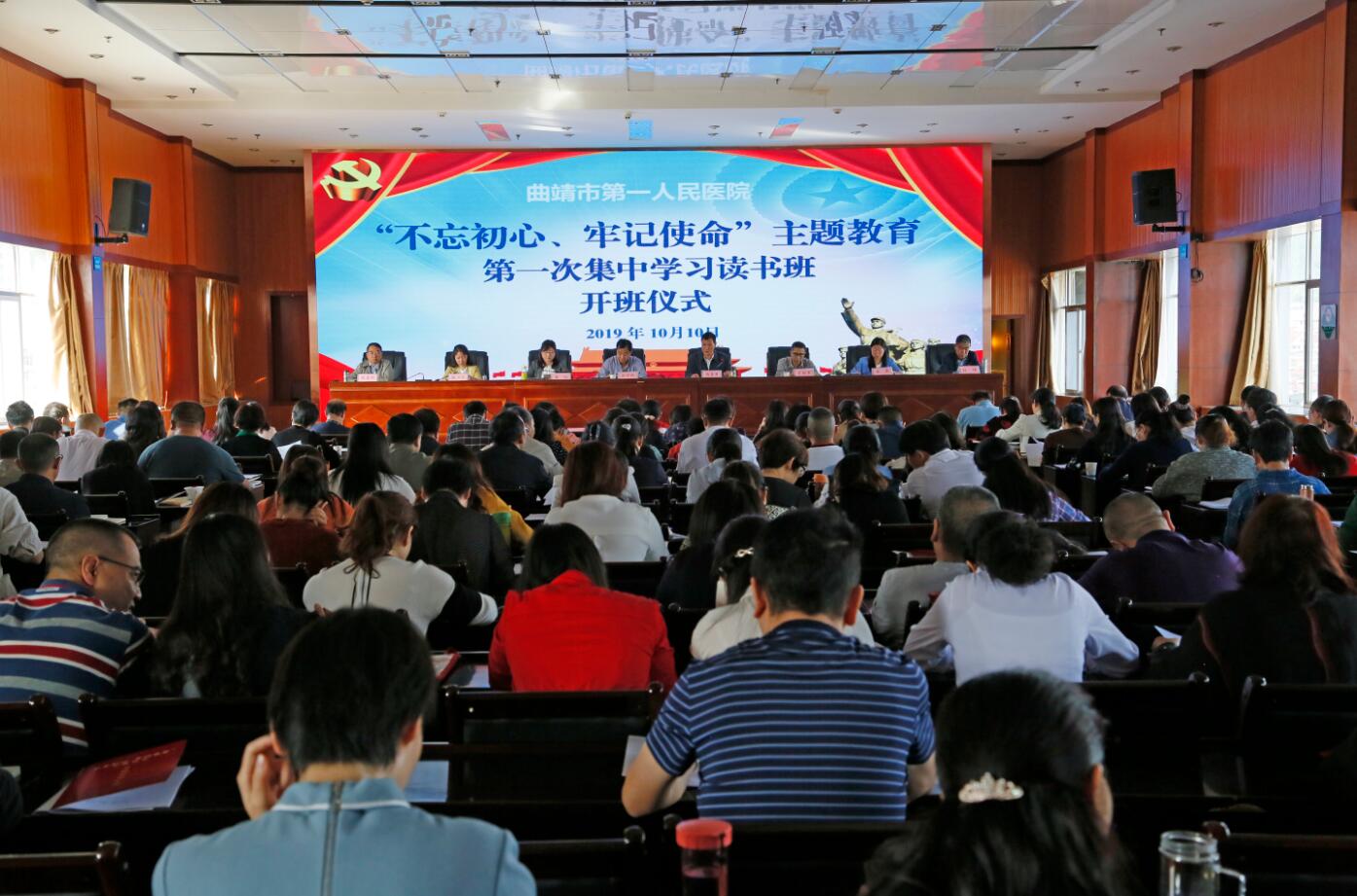 为扎实开展“不忘初心、牢记使命”主题教育,认真搞好主题教育理论学习,10月10日上午,曲靖市第一人民医院“不忘初心、牢记使命”主题教育第一次集中学习读书班在门诊11楼会议室开班。医院党委委员、院长唐锐主持会议,医院党委书记高吉贵作开班动员讲话。市委“不忘初心、牢记使命”主题教育第十八指导组组长、市政府办公室调研员余学琨出席会议并作指导。院领导、院长助理、全院中层干部参加此次集中学习。