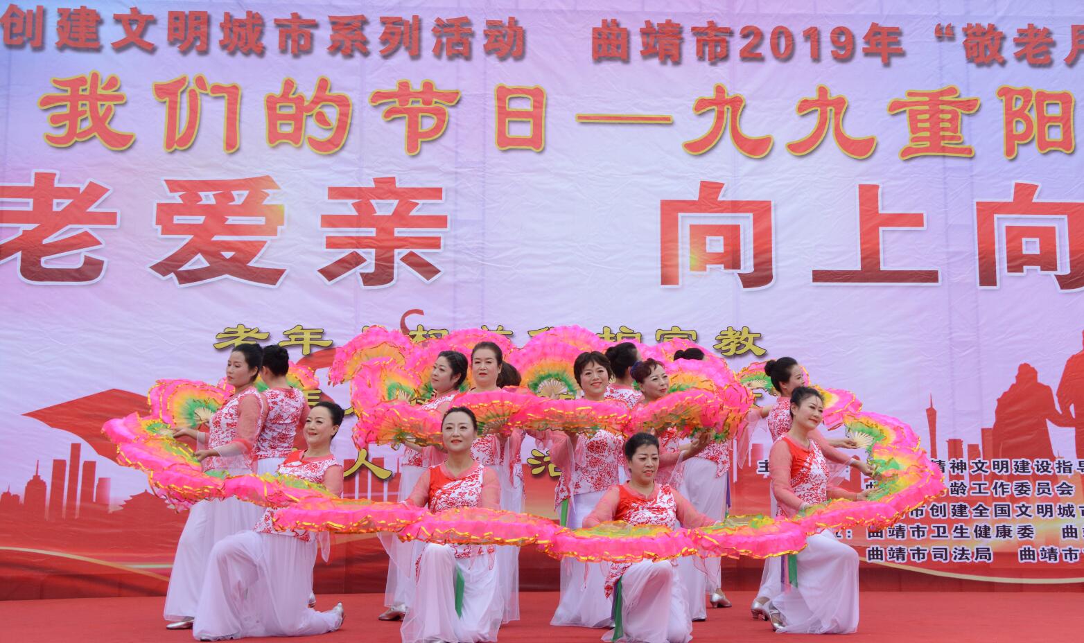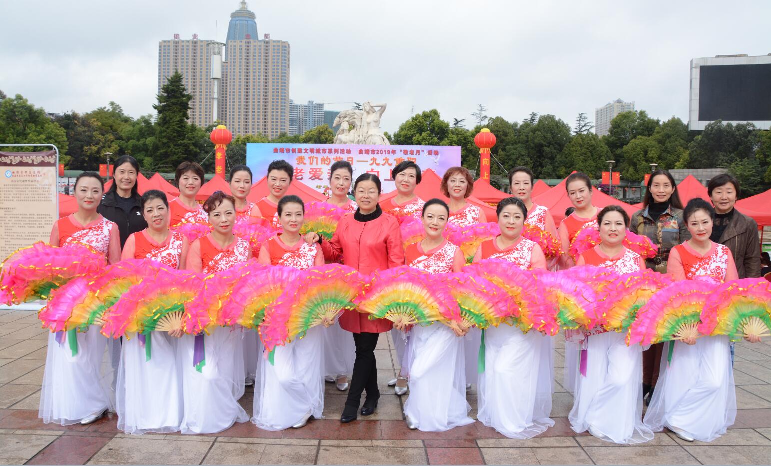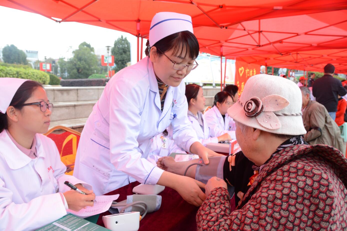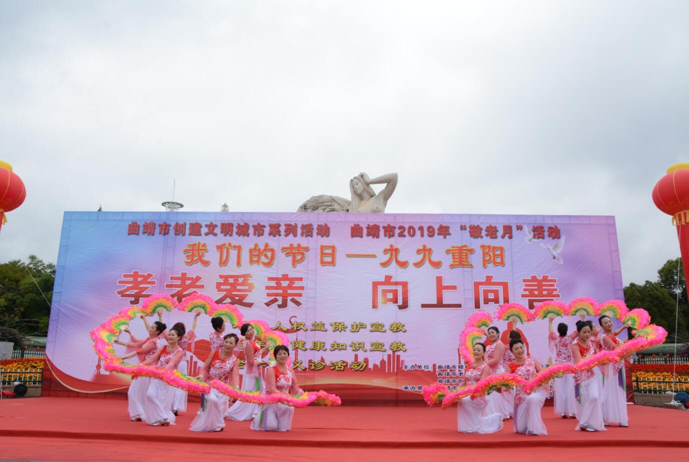 10月是敬老月,10月17日,曲靖市2019年“敬老月”暨我们的节日——九九重阳节系列活动在珠江源广场举行,市一院离退休合唱队参加文艺演出,老年病科医护人员到现场为市民进行义诊。
