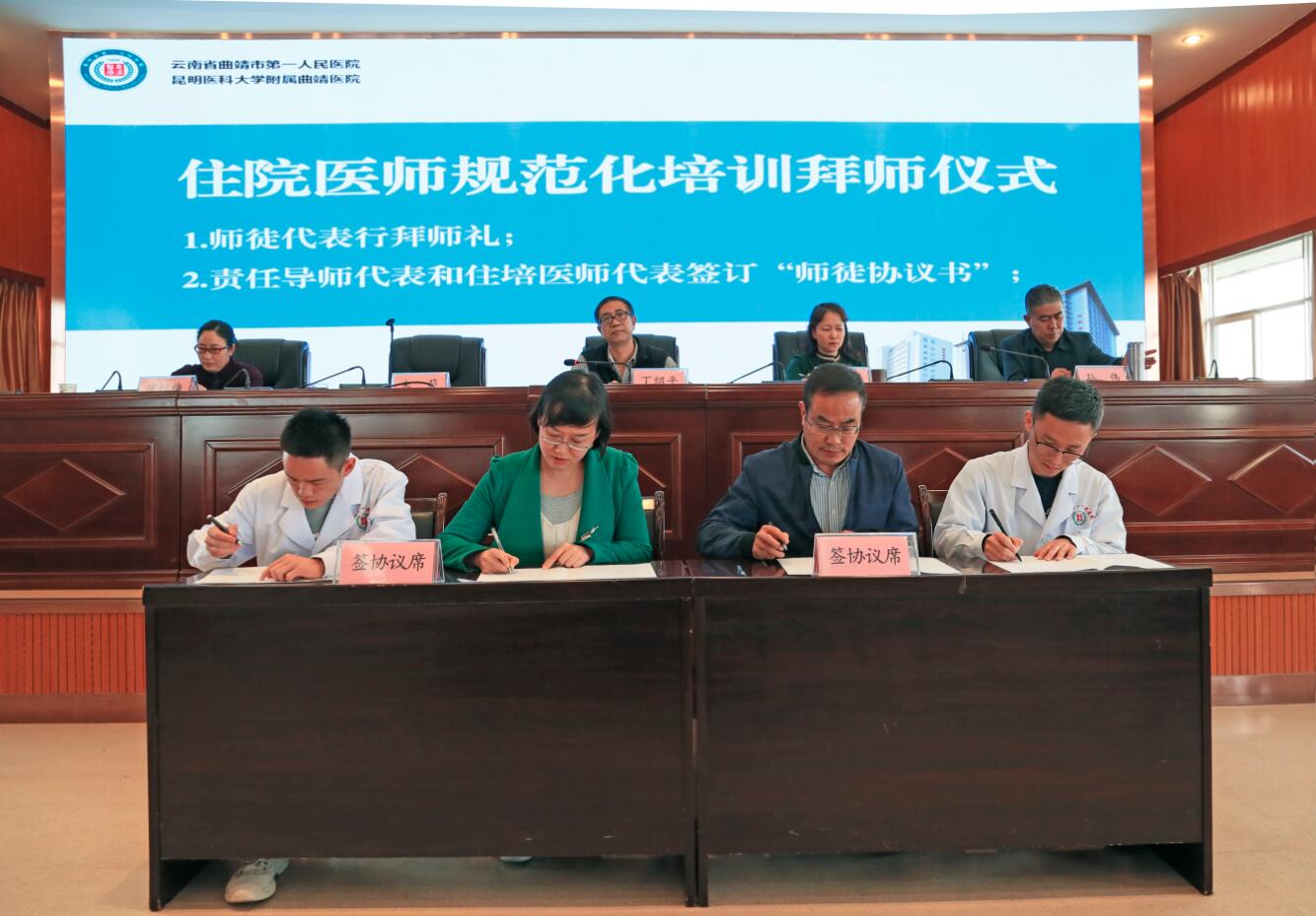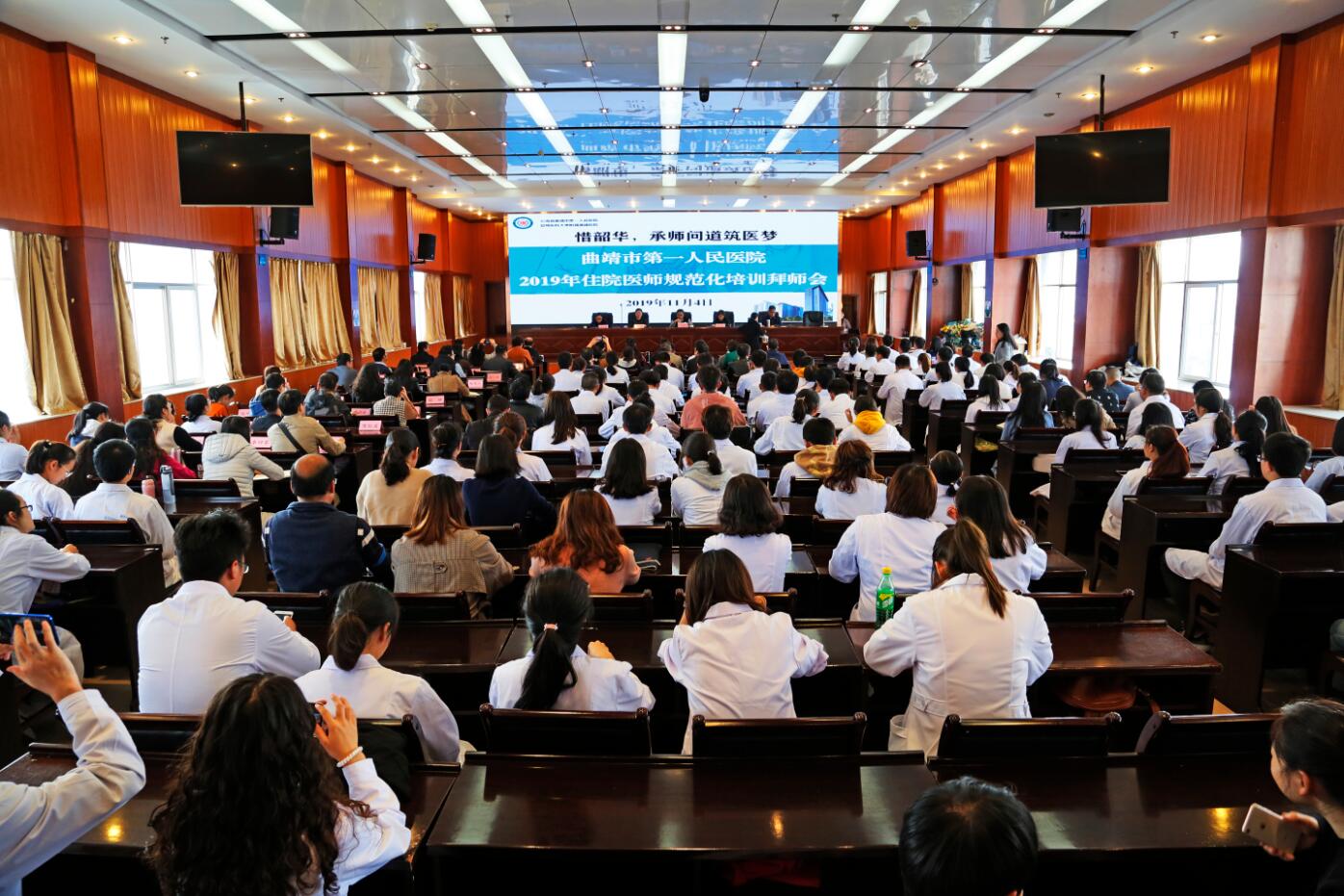 金秋十月,秋高气爽,硕果飘香。11月4日,曲靖市第一人民医院召开“2019年教学工作会暨住院医师规范化培训拜师会”,曲靖市卫健委主管部门领导、医院全体院领导,机关职能部门负责人、医院25个专业基地主任、教学主任、教学秘书, 2019级责任导师及住培医师,部分获奖的优秀教师代表近300人参加了会议。会议由医院副院长丁绍平同志主持。