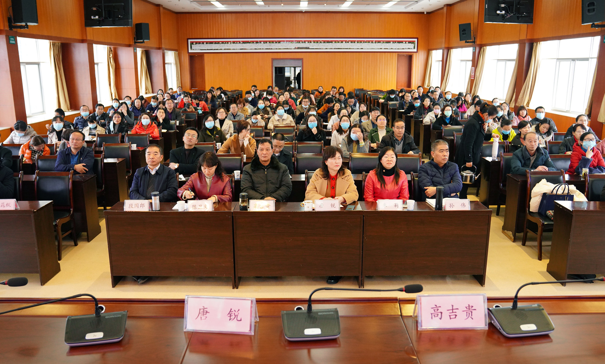 市一院党委书记高吉贵、副院长陈卫文、副院长朱莉、纪委书记段国郎、副院长孙伟、副院长陈昆锐等领导出席会议。全院中层及以上领导干部参加会议。