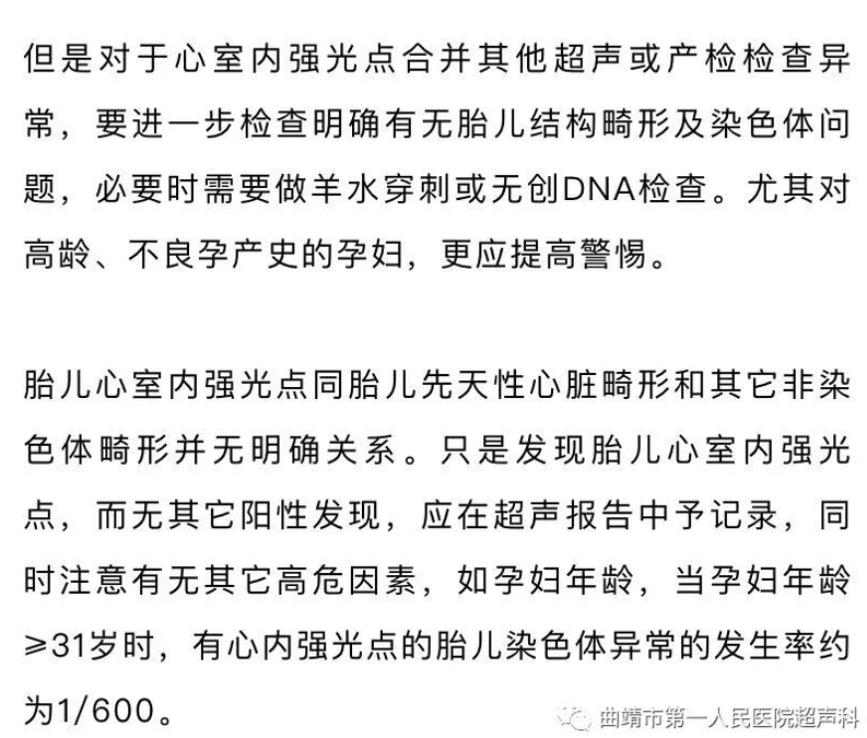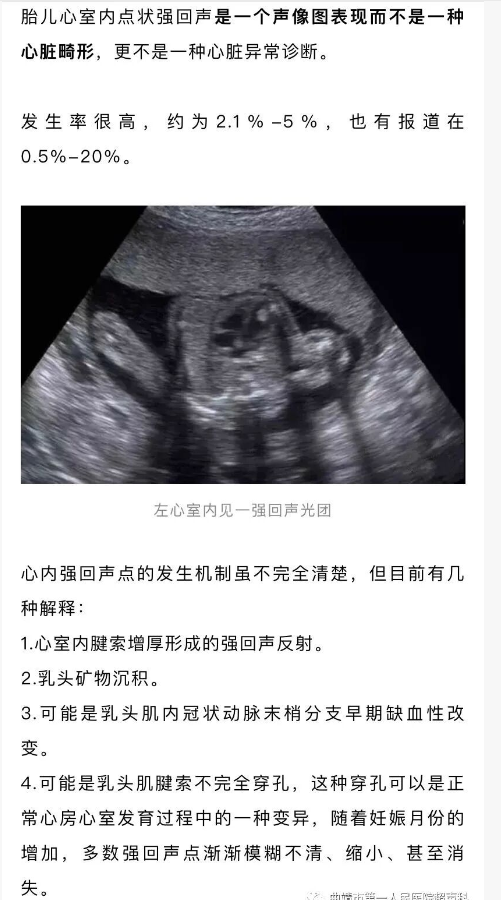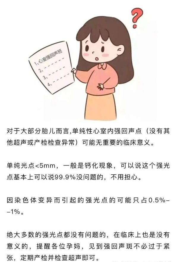 B超检查发现胎儿心室有点状强回声,正常吗?