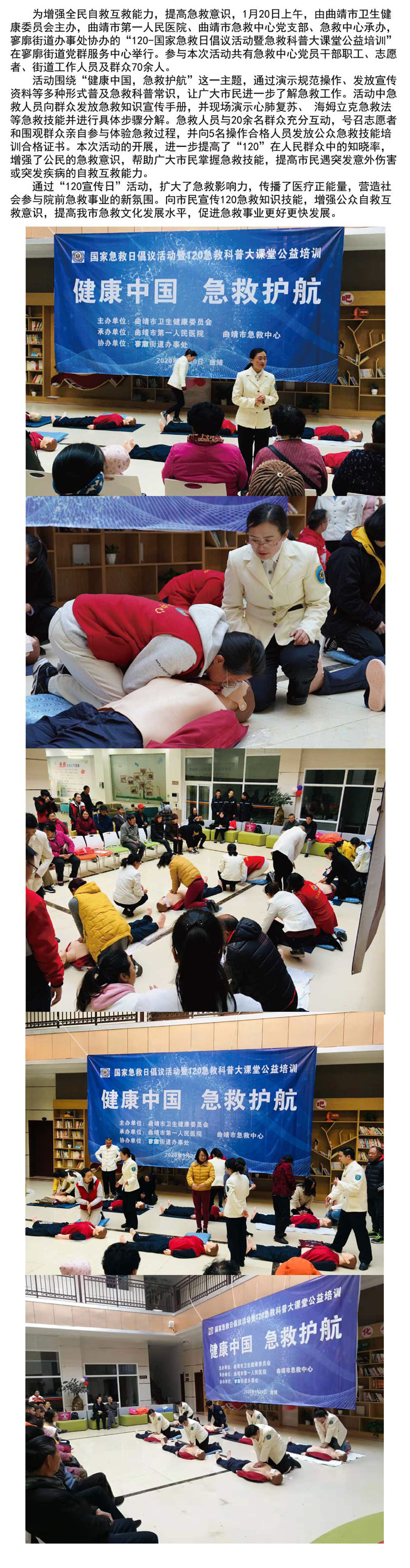2020年120宣传日寥廓街道办事处提高全民自救互救能力,提高急救意识。