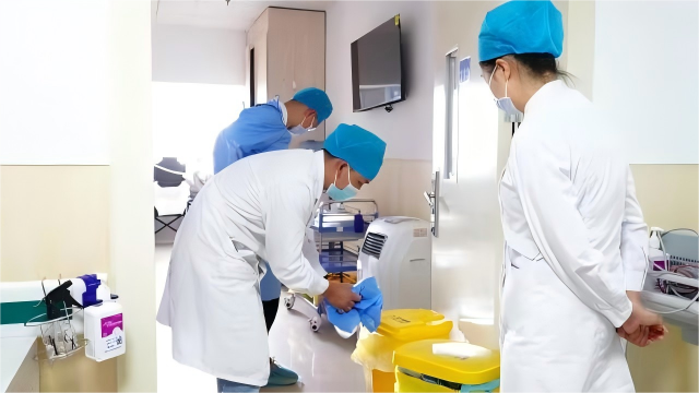 演练模拟北城医院康复科在一周内出现4例下呼吸道感染患者,痰培养结果均为“多重耐药肺炎克雷伯菌肺炎亚种”,且细菌耐药情况相似,高度疑似医院感染暴发。立即报告指挥部,启动应急预案。随后,科室迅速组织隔离患者、加强医护人员防护、专人护理、做好相关的消毒等防控措施;与此同时,医院感染管理部对现场进行环境微生物采样及流行病学调查,医务部组织全院专家会诊,制定救治与隔离方案。