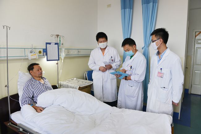 医生手持IPAD完成对病人进行移动查房、在床旁调阅医嘱、检验和检查单报告