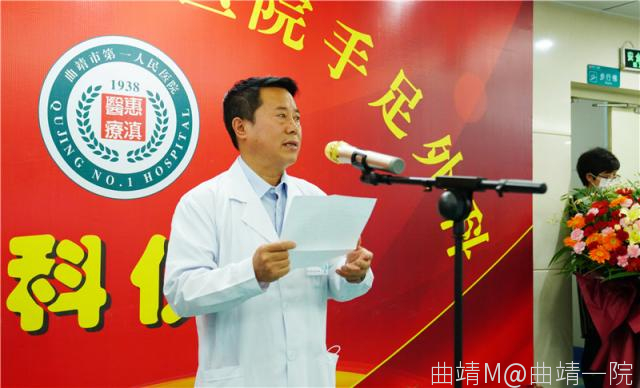 市一院党委书记高吉贵宣布“手足外科”成立,党委副书记、院长唐锐致辞。