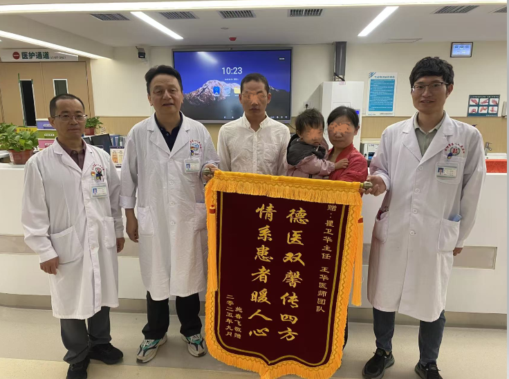 近日,云南省曲靖中心医院儿外科洋溢着温馨感人的一幕。患儿彤彤(化名)的家属满怀感激之情,将一面书写着 “德艺双馨传四方,情系患者暖人心 ” 的鲜红锦旗,亲手送到瞿卫华主任医师、王华主治医师手中,以此表达对全体医护人员在患儿诊疗过程中所展现出的精湛医术和无私关爱的由衷感谢。