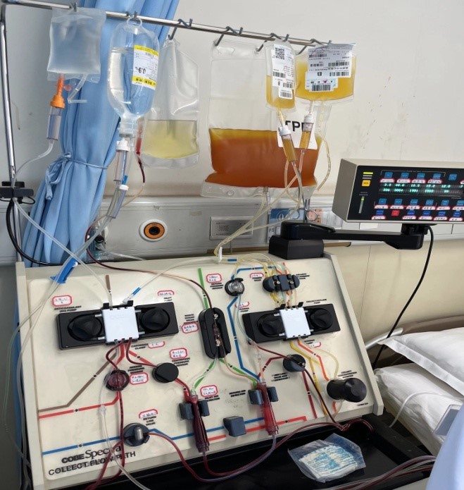 “血栓性血小板减少性紫癜”是一种不常见的血栓性微血管病,伴有微血管病性溶血性贫血,该病起病急骤、病情严重,2/3病例在3个月内死亡。为全力挽救患者生命,市一院血液内科以血浆置换术为首选方案为患者进行治疗。